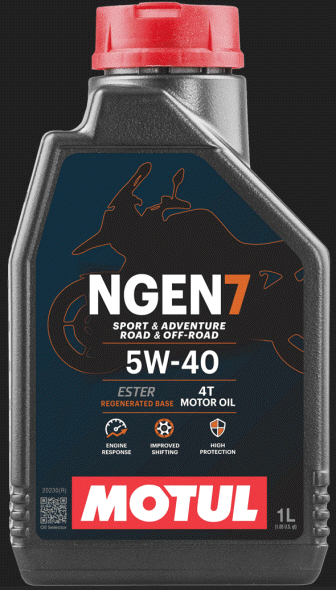 MOTUL NGEN 7 5W-40 4T ist ein innovatives, nachhaltiges Motoröl, das auf einer Kombination aus feinsten Grundölen und Additiven basiert, die mit synthetischen Estern und hochwertigen regenerierten Basisölen formuliert sind.Geeignet für jede Art von Hochleistungs-Straßen- oder Geländemotorrad mit 4-Takt-Motor, mit oder ohne integriertes Getriebe, Nass- oder Trockenkupplung. Perfekt für Motorräder mit Abgasnachbehandlungssystemen wie Katalysatoren oder Sekundärlufteinspritzung. Entwickelt für harte Bedingungen bei Sport- und Abenteuerfahrten. Andere Anwendungen: ATVs, UTVs, SxS, Scooter, Jetski oder Schneemobile, je nach Viskositätsempfehlung des Herstellers.