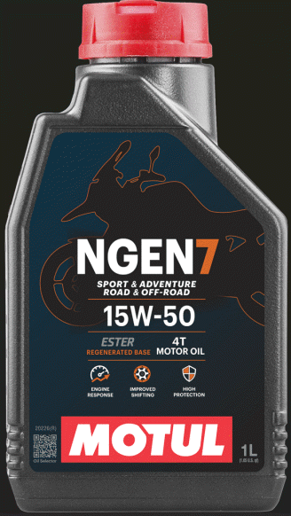 MOTUL NGEN 7 15W-50 4T ist ein innovatives, nachhaltiges Motoröl, das auf einer Kombination aus feinsten Grundölen und Additiven basiert, die mit synthetischen Estern und hochwertigen regenerierten Basisölen formuliert sind.Geeignet für jede Art von Hochleistungs-Straßen- oder Geländemotorrad mit 4-Takt-Motor, mit oder ohne integriertes Getriebe, Nass- oder Trockenkupplung. Perfekt für Motorräder mit Abgasnachbehandlungssystemen wie Katalysatoren oder Sekundärlufteinspritzung. Entwickelt für harte Bedingungen bei Sport- und Abenteuerfahrten. Andere Anwendungen: ATVs, UTVs, SxS, Scooter, Jetski oder Schneemobile, je nach Viskositätsempfehlung des Herstellers.