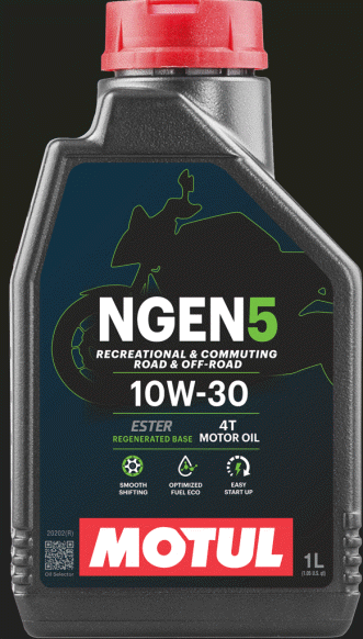 MOTUL NGEN 5 10W-30 4T ist ein innovatives, nachhaltiges Motoröl, das auf einer Kombination aus feinsten Grundstoffen und Additiven basiert, die mit synthetischen Estern und hochwertigen regenerierten Grundölen gemischt sind. Geeignet für alle Arten von Straßen- und Geländemotorrädern mit 4-Takt-Motor, mit oder ohne integriertes Getriebe, Nass- oder Trockenkupplung. Perfekt für Motorräder mit Abgasnachbehandlungssystemen wie Katalysatoren oder Sekundärlufteinspritzung. Entwickelt für den täglichen Gebrauch und für Freizeitaktivitäten. Auch ideal geeignet für Youngtimer und Classic-Motorräder.Andere Anwendungen: ATVs, UTVs, SxS, Wassermotorräder (PWC) oder Schneemobile, je nach Viskositätsempfehlung des Herstellers.