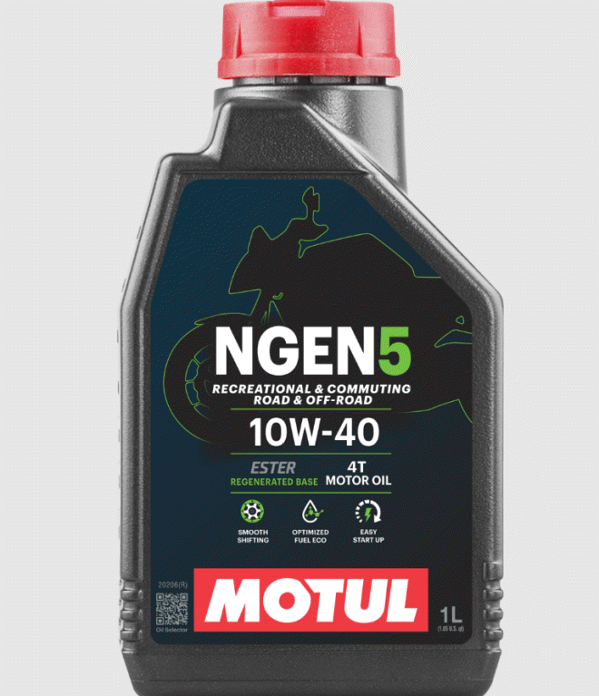 MOTUL NGEN 5 10W-40 4T ist ein innovatives, nachhaltiges Motoröl, das auf einer Kombination aus feinsten Grundölen und Additiven basiert, die mit synthetischen Estern und hochwertigen regenerierten Basisölen formuliert sind.Geeignet für alle Arten von Straßen- und Geländemotorrädern mit 4-Takt-Motor, mit oder ohne integriertes Getriebe, Nass- oder Trockenkupplung. Perfekt für Motorräder mit Abgasnachbehandlungssystemen wie Katalysatoren oder Sekundärlufteinspritzung. Entwickelt für den täglichen Gebrauch und für Freizeitaktivitäten. Auch ideal geeignet für alle Youngtimer und Classic-Motorräder, die eine Viskosität von 10W-40 benötigen. Andere Anwendungen: ATVs, UTVs, SxS, Scooter, Jetski oder Schneemobile, je nach Viskositätsempfehlung des Herstellers.